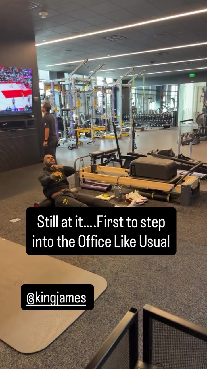 工位自嗨!詹姆斯一边用泡沫轴放松一边激情说唱